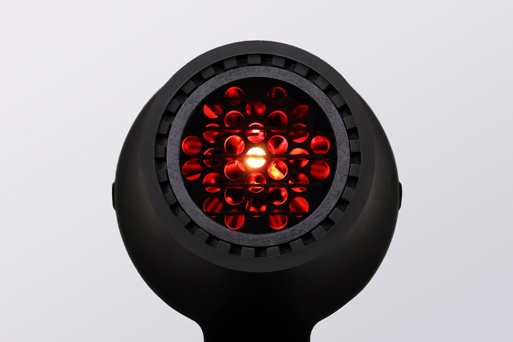 遠赤外線は頭皮の奥まで届く優しい浸透熱です。頭皮の根本からケアするので毛髪まで健康になり、潤いのある艶やかな髪の毛へと導きます。具体的には髪の毛を保湿しながら素早く乾かせたり、クセが伸ばしやすい、湿気が多い日でもスタイリングが長持ちするといった効果があります。